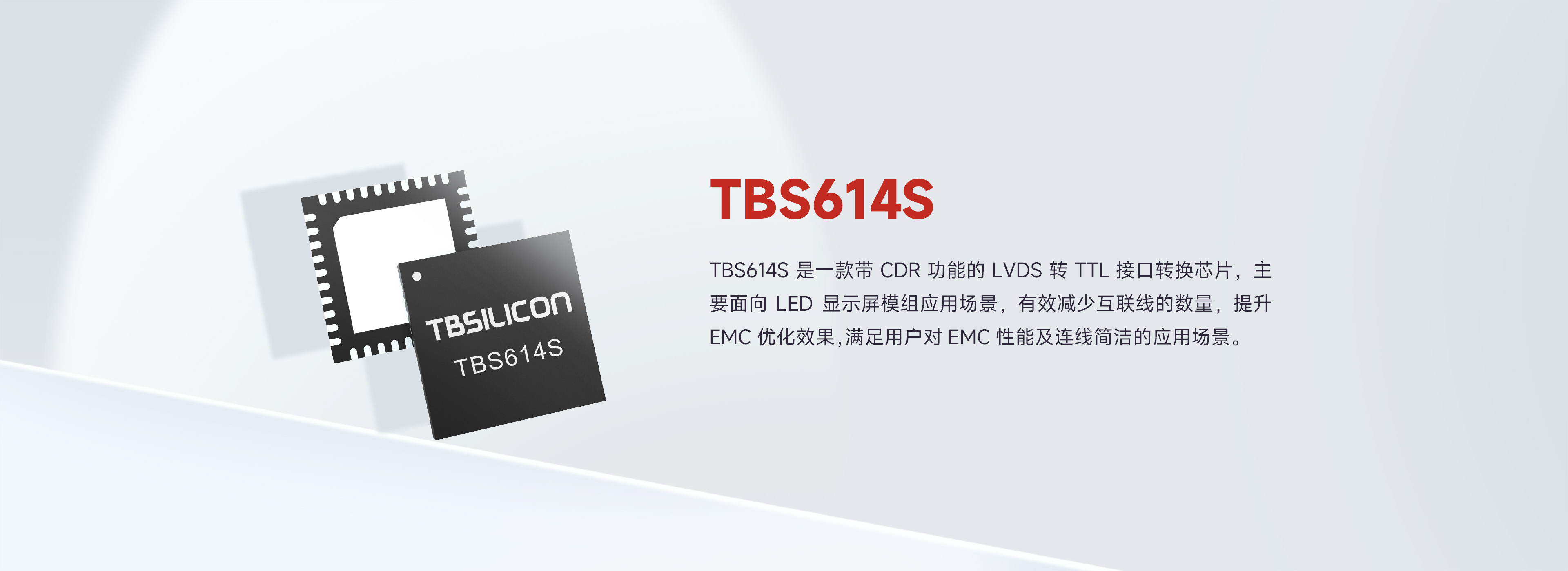 相关推荐: 基本解决方案 产品型号 接口 输出数据组 ADC数量 Flash大小 是否支持直接点亮模组 封装 更多 TBS614E 2对LVDS信号输入,1对LVDS输出,数据输入接口线速率166Mbps-572Mbps 4 1 8M 否 QFN40 TBS615S 1对LVDS信号输入,1对LVDS信号输出,数据输入接口速率固定,最大625Mbps 4 1 16M 是 QFN40 TBS616T 2对LVDS信号输入,2对LVDS信号输出,数据输入接口速率固定,最大625Mbps 6 3 32M 是 LQFP48